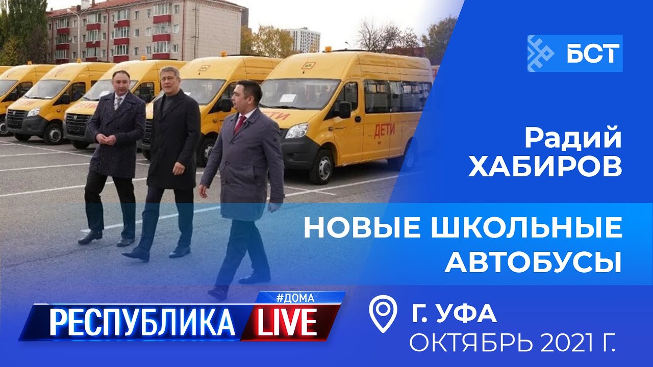 В 2021 году в Башкортостане 49 157 учеников добираются до учёбы на автобусах. За 2019, 2020 и 2021 годы автопарк школ республики пополнили 443 машины. Глава Башкортостана Радий Хабиров - на парковке универсального комплекса «Уфа-Арена», в День учителя вручает директорам школ со всей республики ключи от 114 новых автобусов марки ГАЗ и УАЗ.